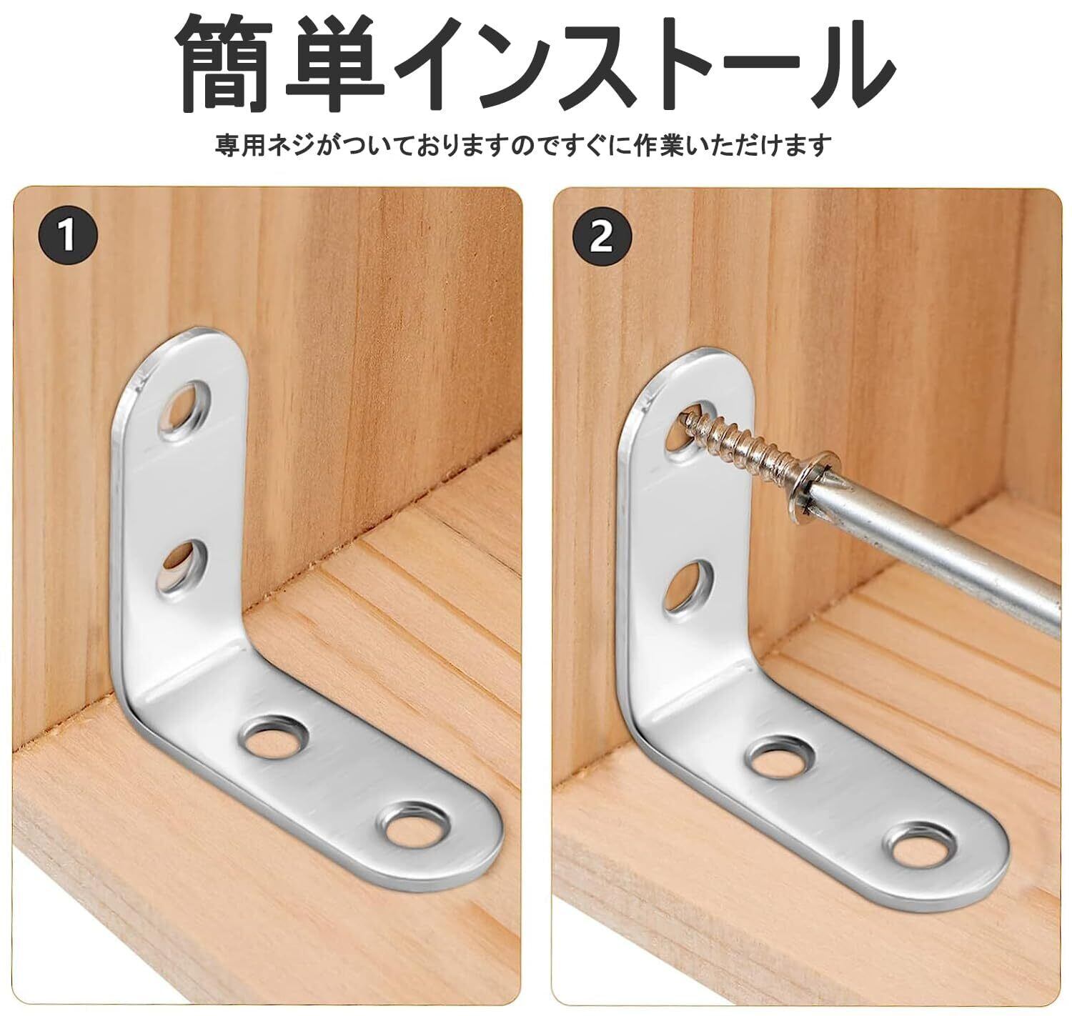 【商品仕様】Lアングル金具16個、素材:ステンレス塗装黒です。相応数量の黒ねじ付きです、ネジ素材:鉄製塗装黒です。