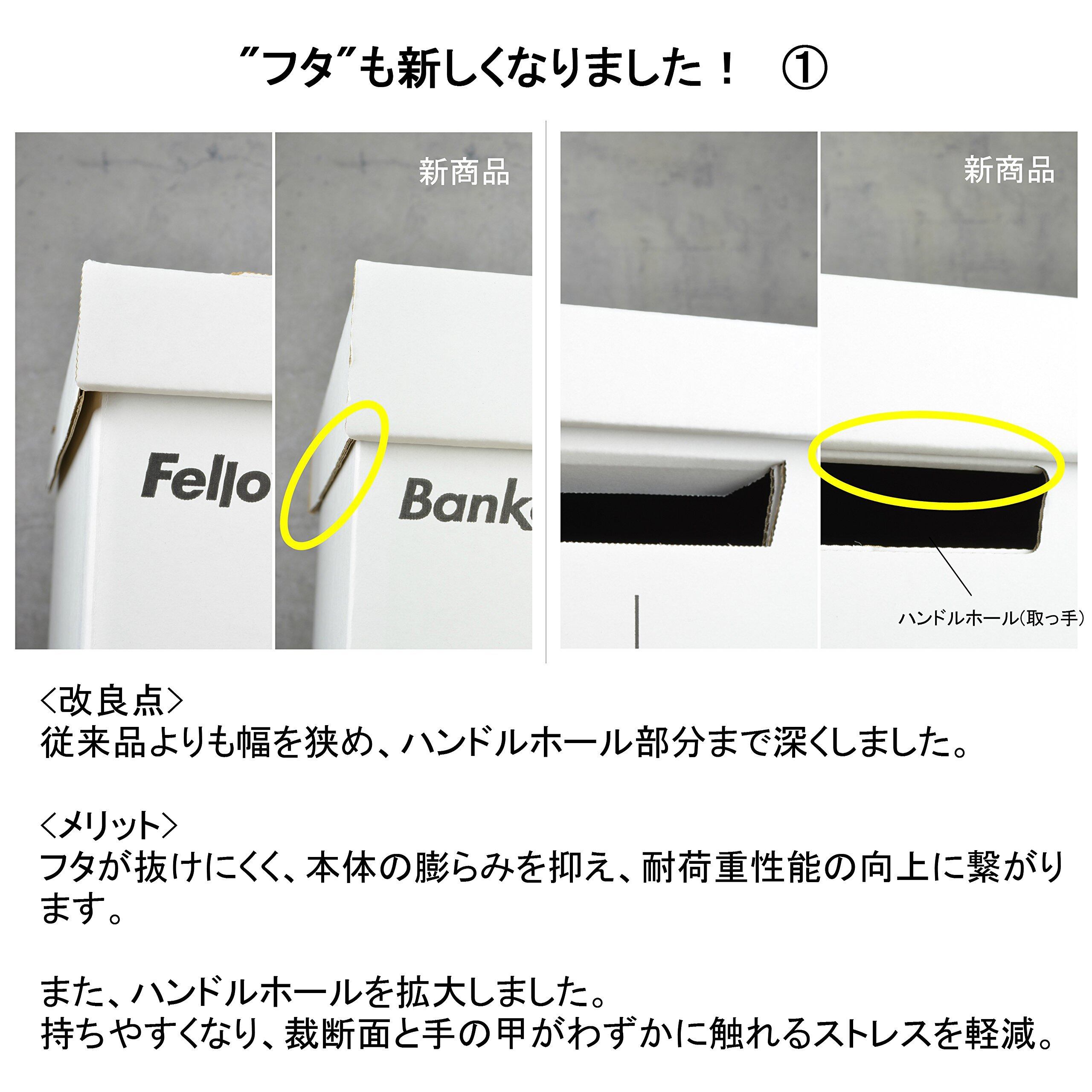 外観デザインをアップデート! ひと目でバンカーズボックスと分かる構成要素は大きく変えず、モダンでよりミニマムに、そしてシリーズ同士で組み合わせても統一感がでるようモジュール化しました。また、自由に書き込んだりセルフカスタムするための余白をできるだけつくり、且つ付箋やラベル・マスキングテープをまっすぐ貼れるようガイドも設けています。構造面では、フェローズ独自の組み立て方法"Fastfold(R)"を採用し、わずか3秒で本体の組み立てを可能にしました。貼り合わせ面を増やしたことで耐荷重性能は20%以上向上しています。