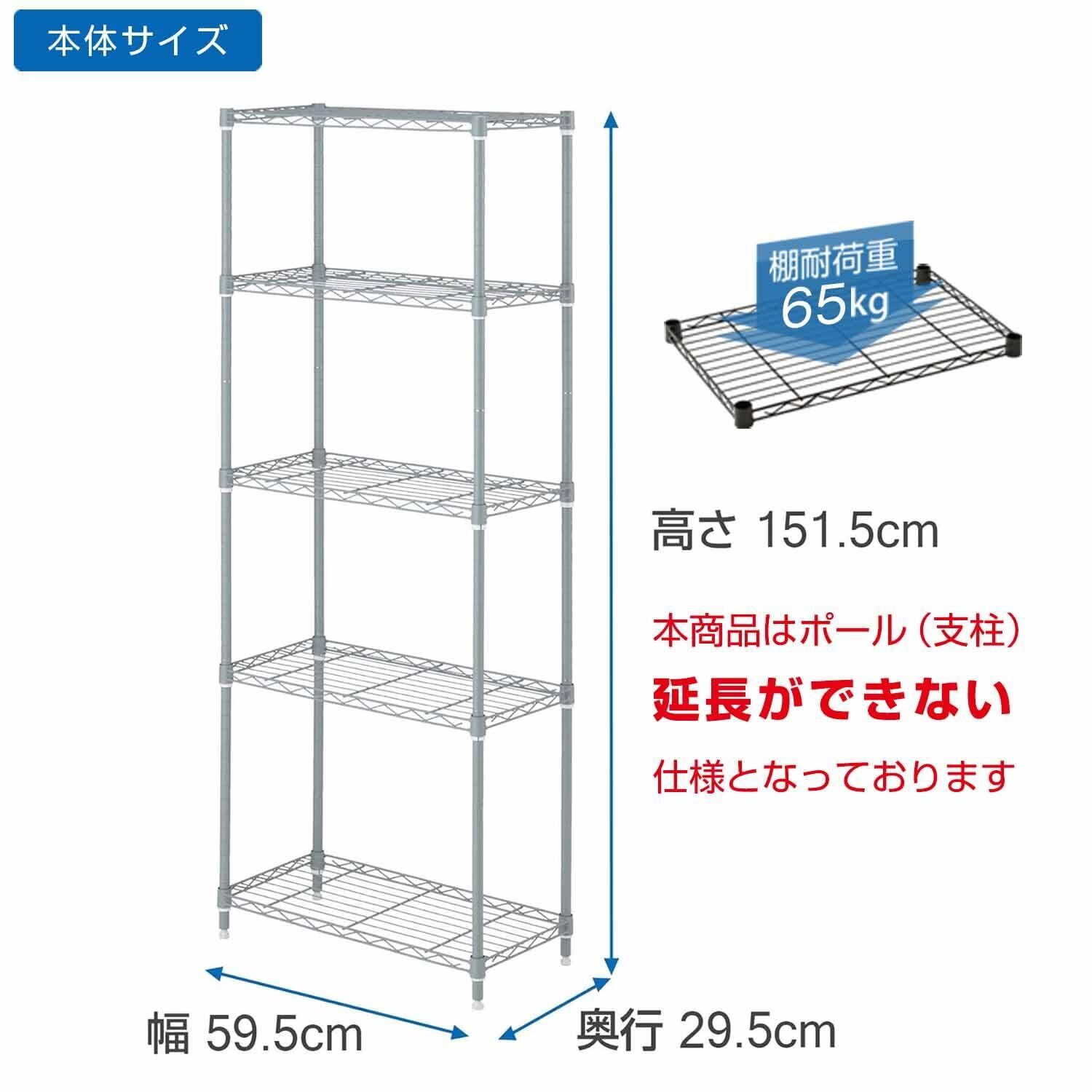 ドウシシャ ルミナス互換 5段 幅60 スリムスチールラック 棚 収納 白 ホワイト 全体耐荷重325kg 幅59.5cm×奥行29.5cm×高さ151.5cm M1560305WH 頑丈 ワイヤーシェルフ 奥行30 ポール径19mm パーツ対応 キッチン ランドリー