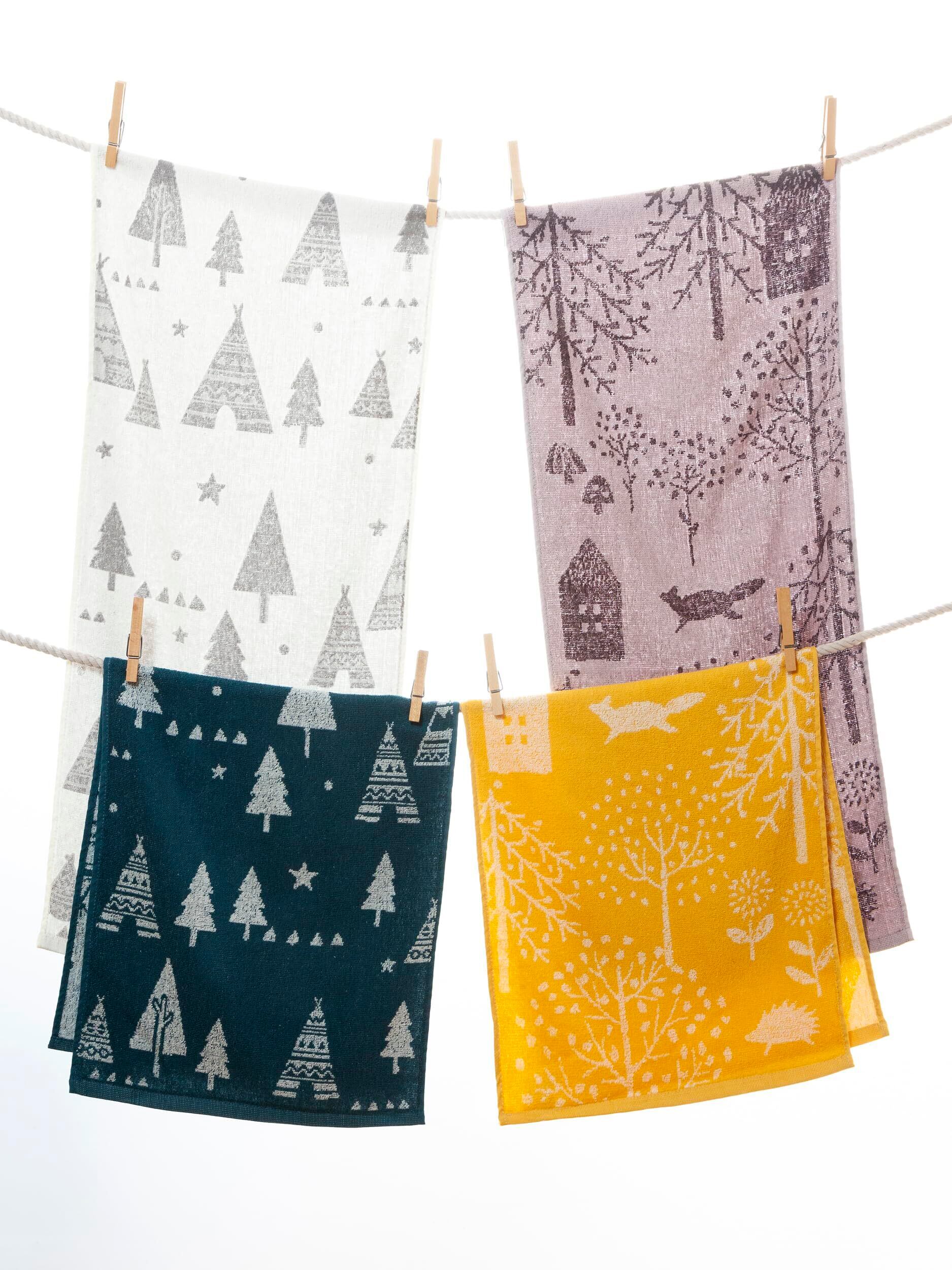 【北欧風デザイン】おしゃれでカラフルなジャガード織りのフェイスタオル。北欧イメージのこっくりとしたカラーが印象的で、お部屋のインテリアにもよく馴染むタオルアイテムです。