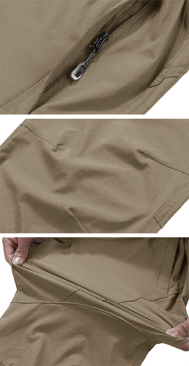 【多機能】①抜群の伸縮性があり、さまざまな活動に適しています。②速乾性と吸湿性。急速に人体の汗を吸収できて、速やかに大面積で拡散し、即刻に吸湿吸汗の効果に達できます。体は快適な状態を持っていられます。③撥水性。ズボン表面はテフロンで防水処理を行いますので、撥水性があります。④軽量性と素晴らしい通気性。⑤耐摩耗性。生地はしっかりとした質感で、肌触りもよく、ハリがあり、耐久性に優れている。