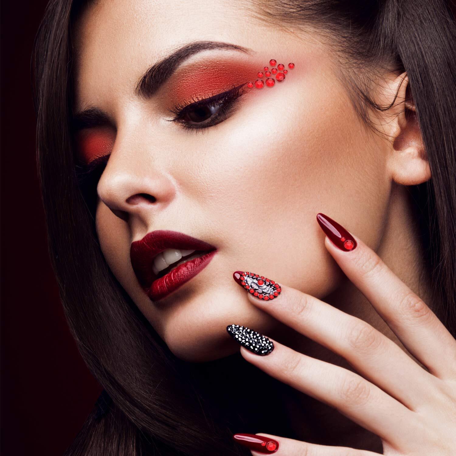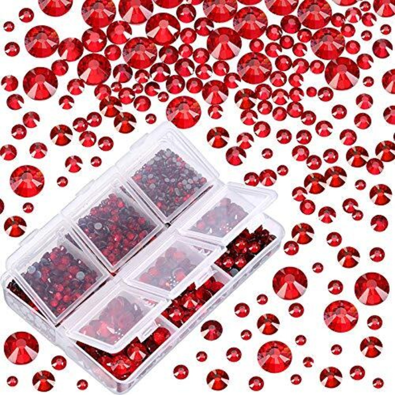 3000個 ネイル デコ用 ラインストーン レッド 大容量セット 3D ネイルアート セルフネイル レジン 飾り ケース入り ピンセット、ペン、皿などが付き