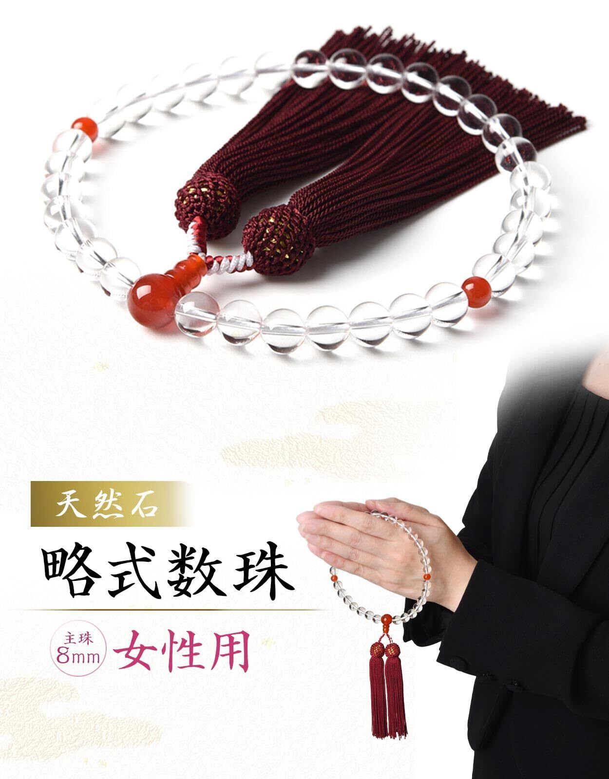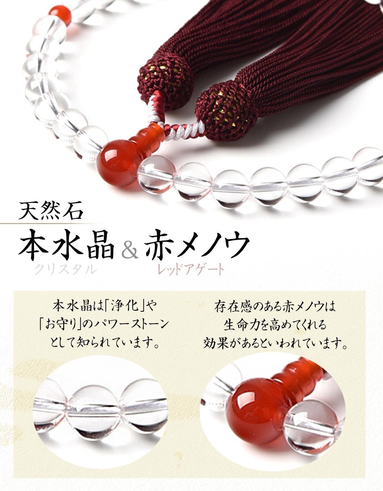 [EsuonHappiness] 数珠 女性用 頭房 京都職人手作り 葬式 葬儀 数珠袋付き 天然素材 8mm [本水晶/赤メノウ]