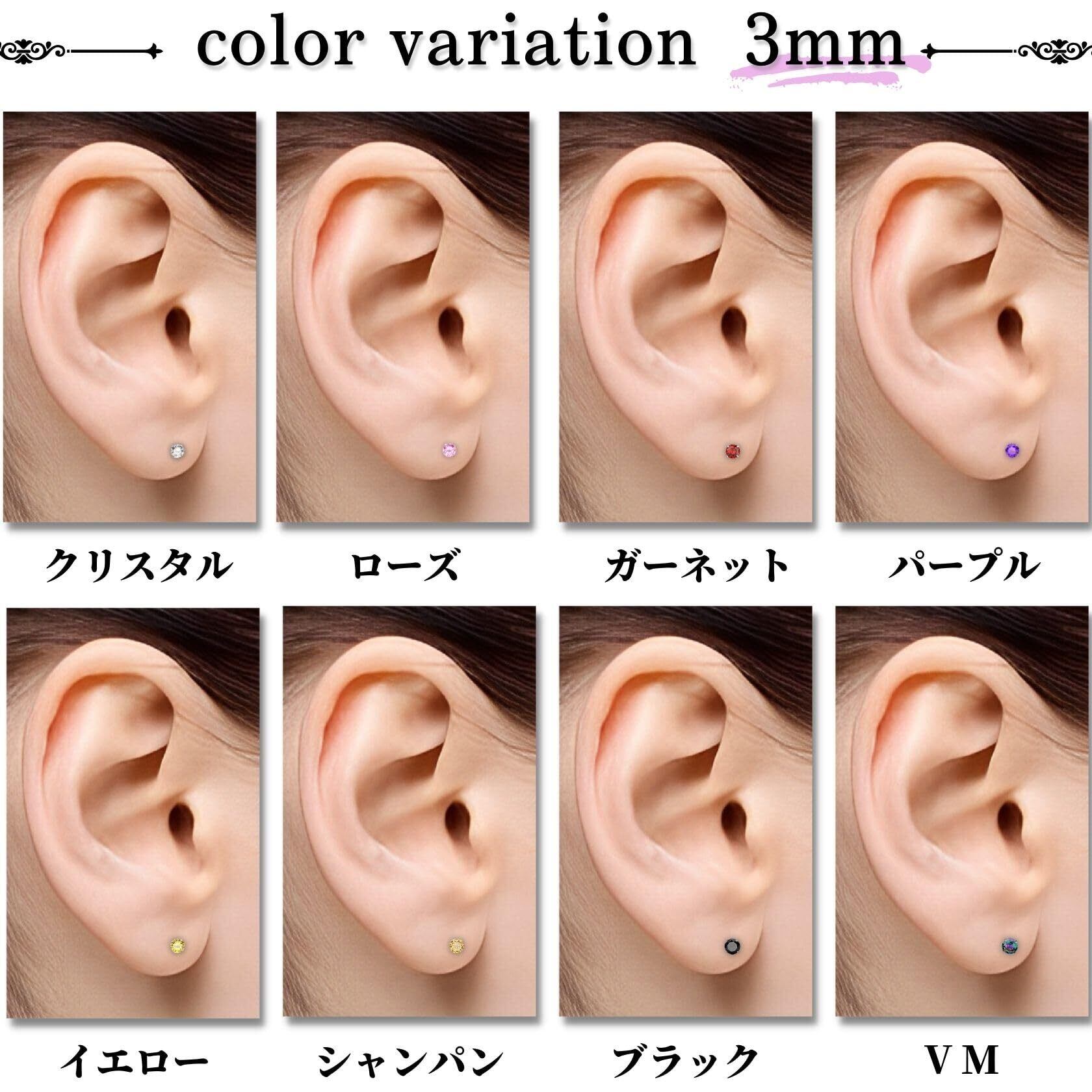 【選べる8カラー&3サイズ】人気の8カラーとジュエルサイズ3mm、4mm、5mmの3サイズをご用意いたしました。その日の気分やコーディネートに応じて使い分けることができます。