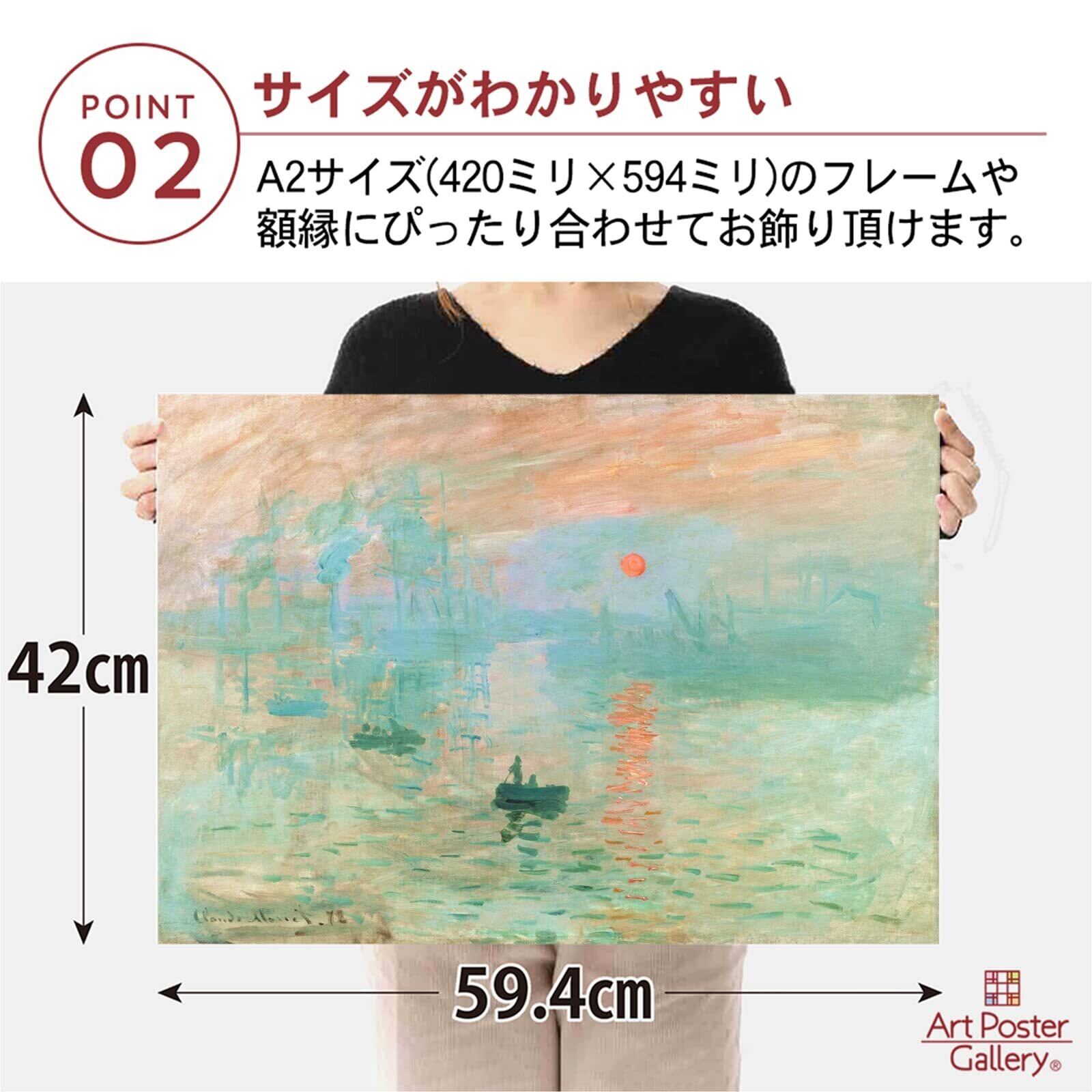【サイズ】A2(420ミリ×594ミリ) 市販のA2フレーム(額縁)にぴったり合います。ポスターが届いたら好きなフレームと合わせたり、ピンなどで壁に飾って下さい。気軽に名画 を楽しめます。