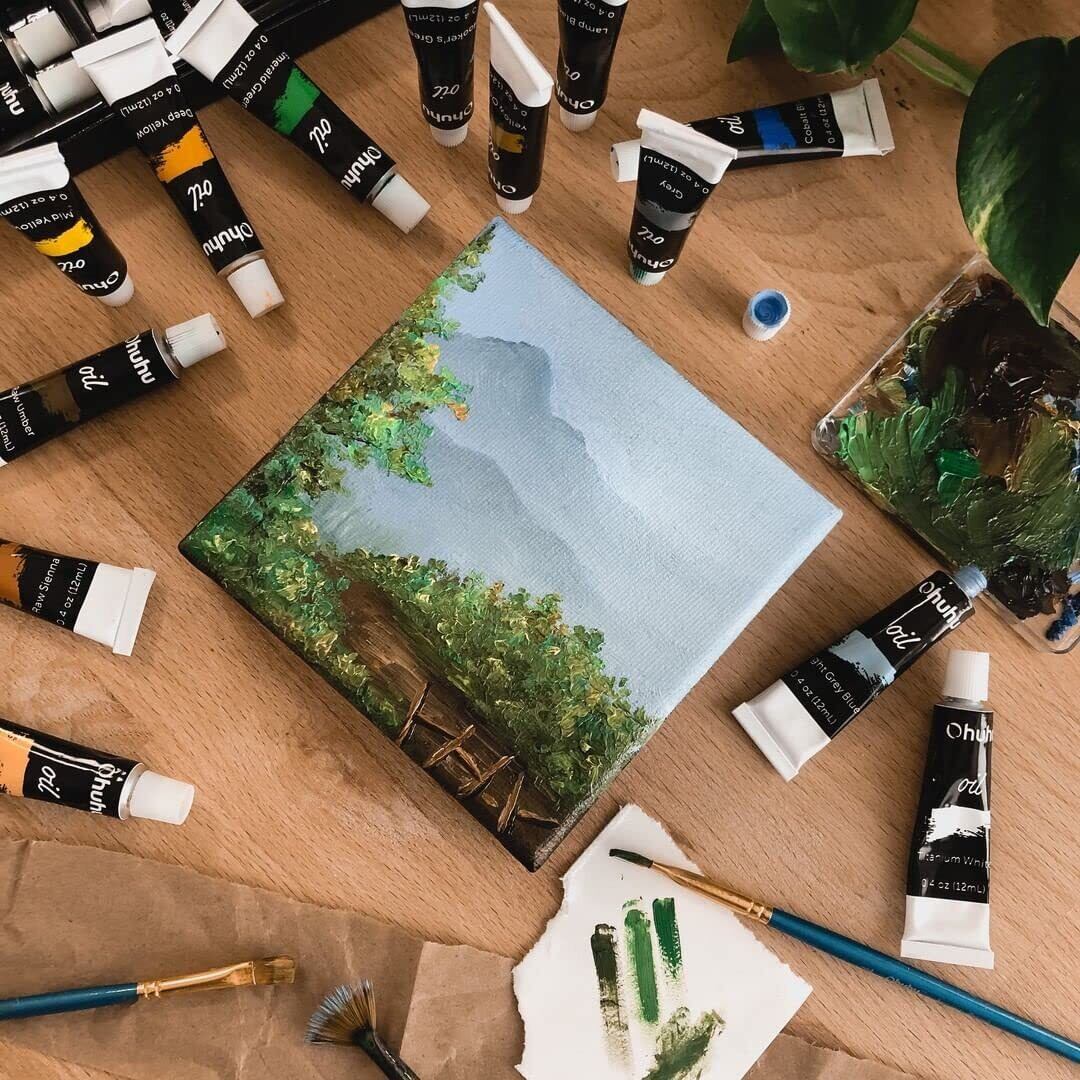 Ohuhu 油絵具 セット 24色 油絵 油絵の具 絵の具 絵画 画材 セット初心者 大人 男の子 女の子 12ml ペイント チューブ
