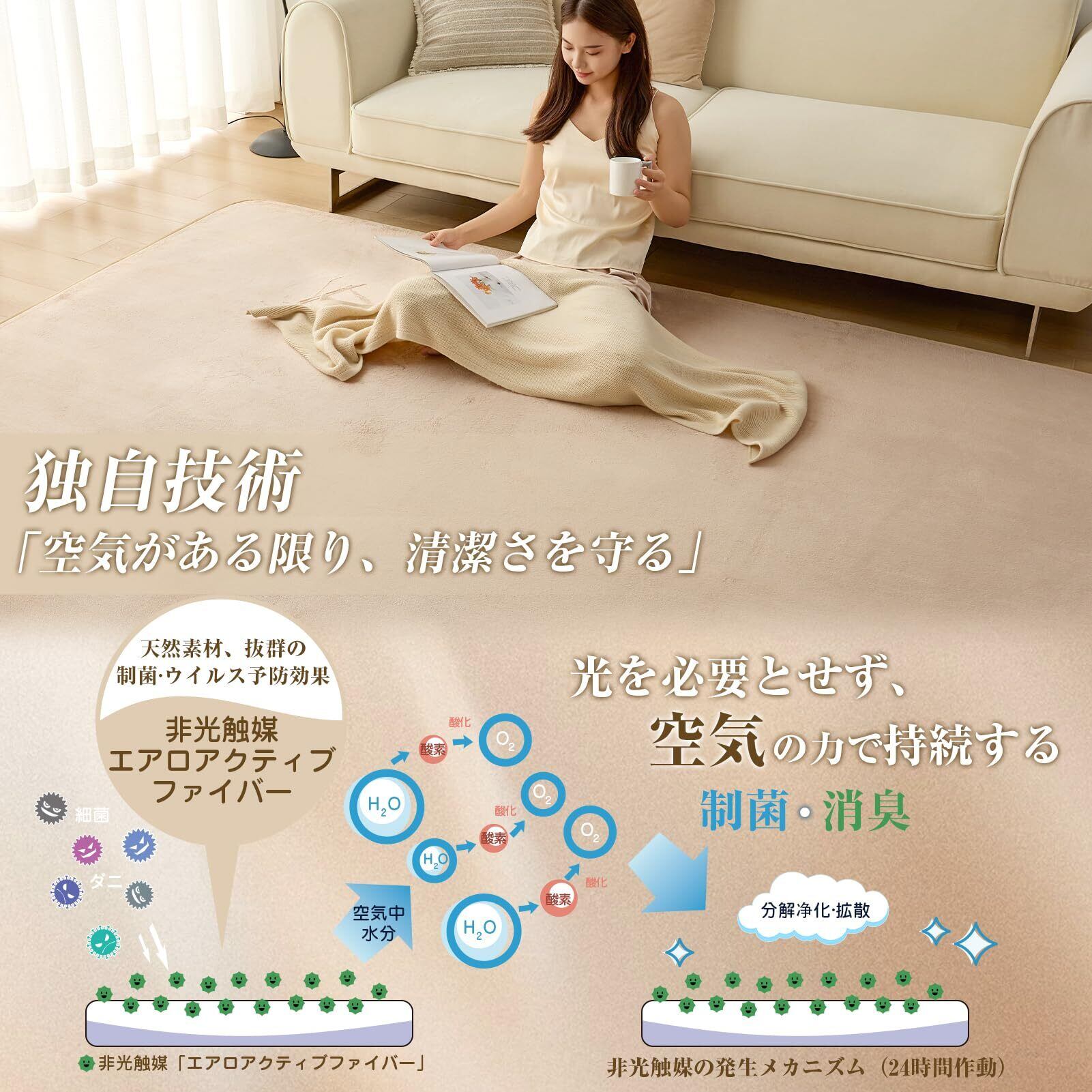 Mensu カーペット ラグ ラグマット 洗える 185×185cm 約2畳 絨毯 フランネルラグ 【至極の肌触り】 24時間持続制菌消臭 毛足4mm 滑り止め付 北欧 おしゃれ 【SOFT HOT】 制菌防臭 オールシーズン 床暖房 ミルクティー | geisha Cat*