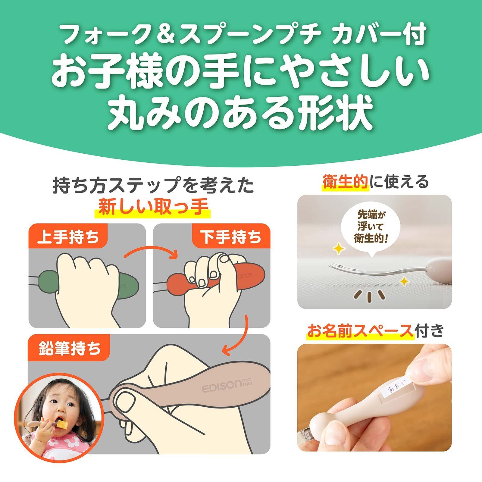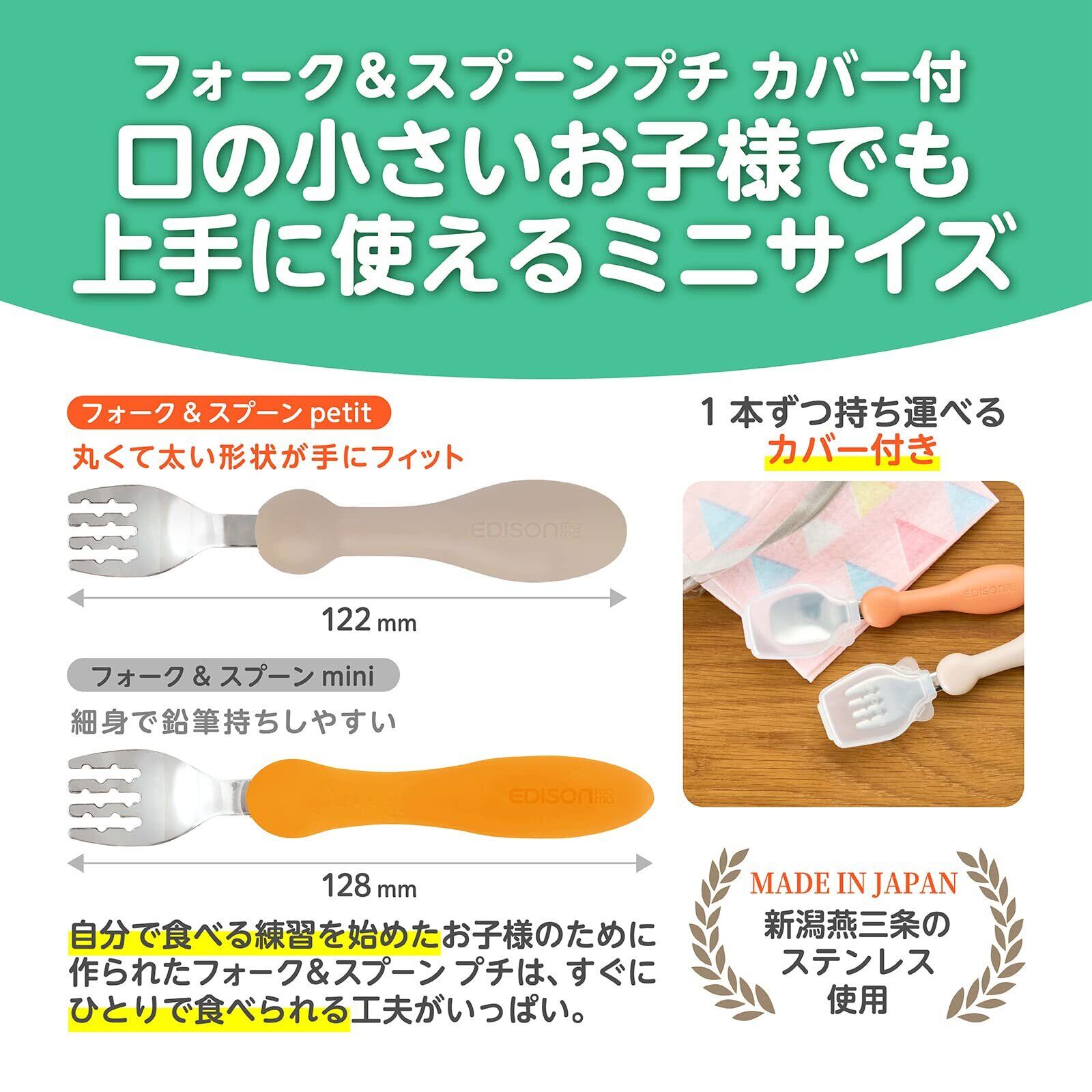 EDISONmama(エジソンママ) フォーク&スプーン 離乳食完了期 1歳頃~ テラコッタ プチカバー付き 授乳・食事用品 食器・テーブルウェア カトラリー ベビー用 ベビー用食器 食事 サポート 食育 持ち方