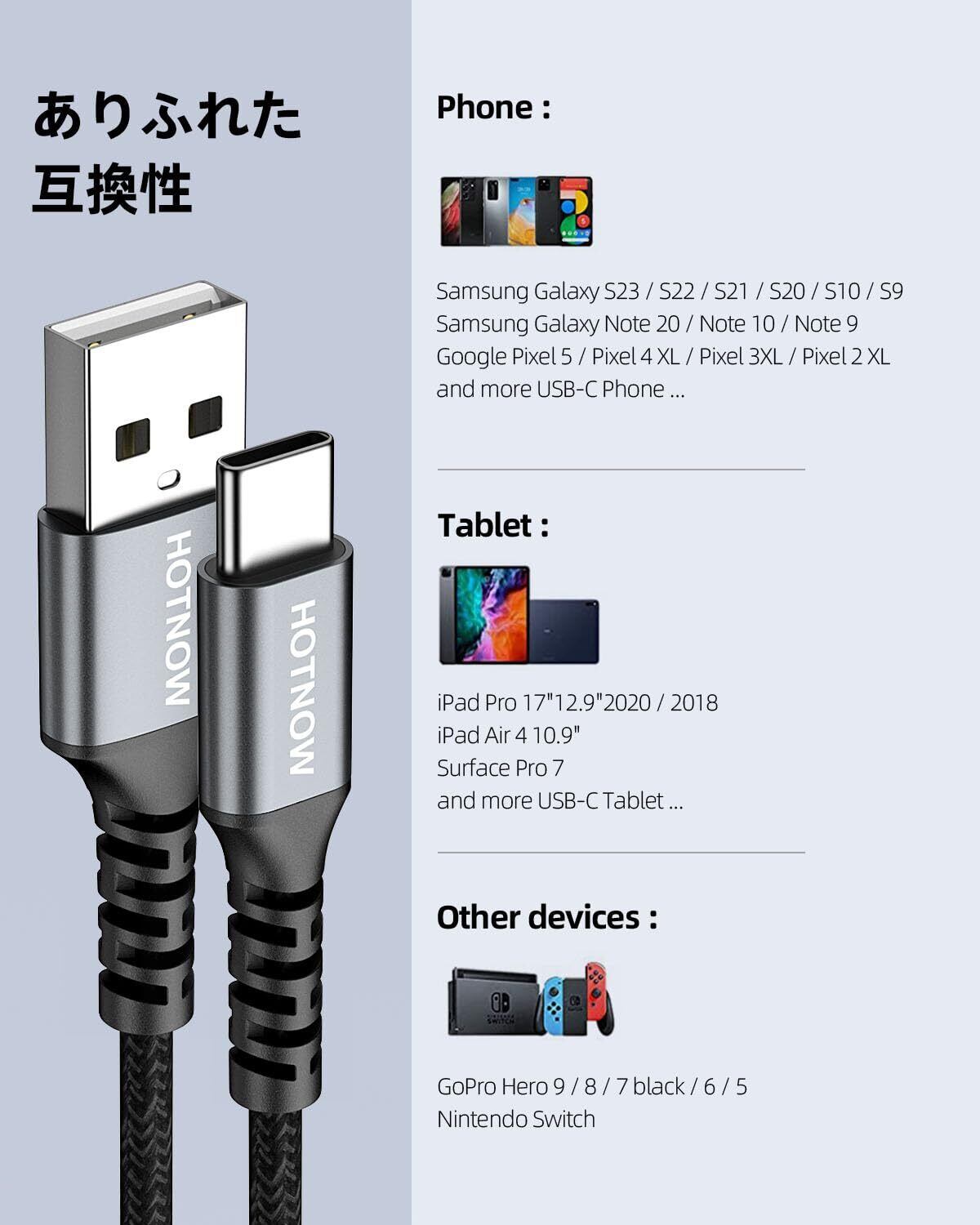 短いUSB Cケーブル0.5m、HOTNOW [3本 50cm]ポータブルUSB-C充電器Galaxy S10 S9 S8 Plus Note 9 8、パワーバンクおよびその他のタイプcデバイス用のナイロン編組高速充電コード