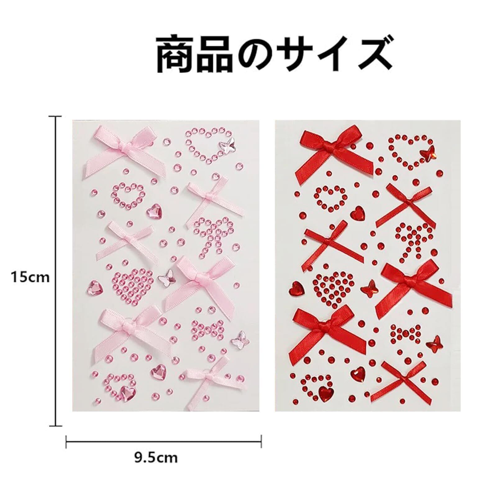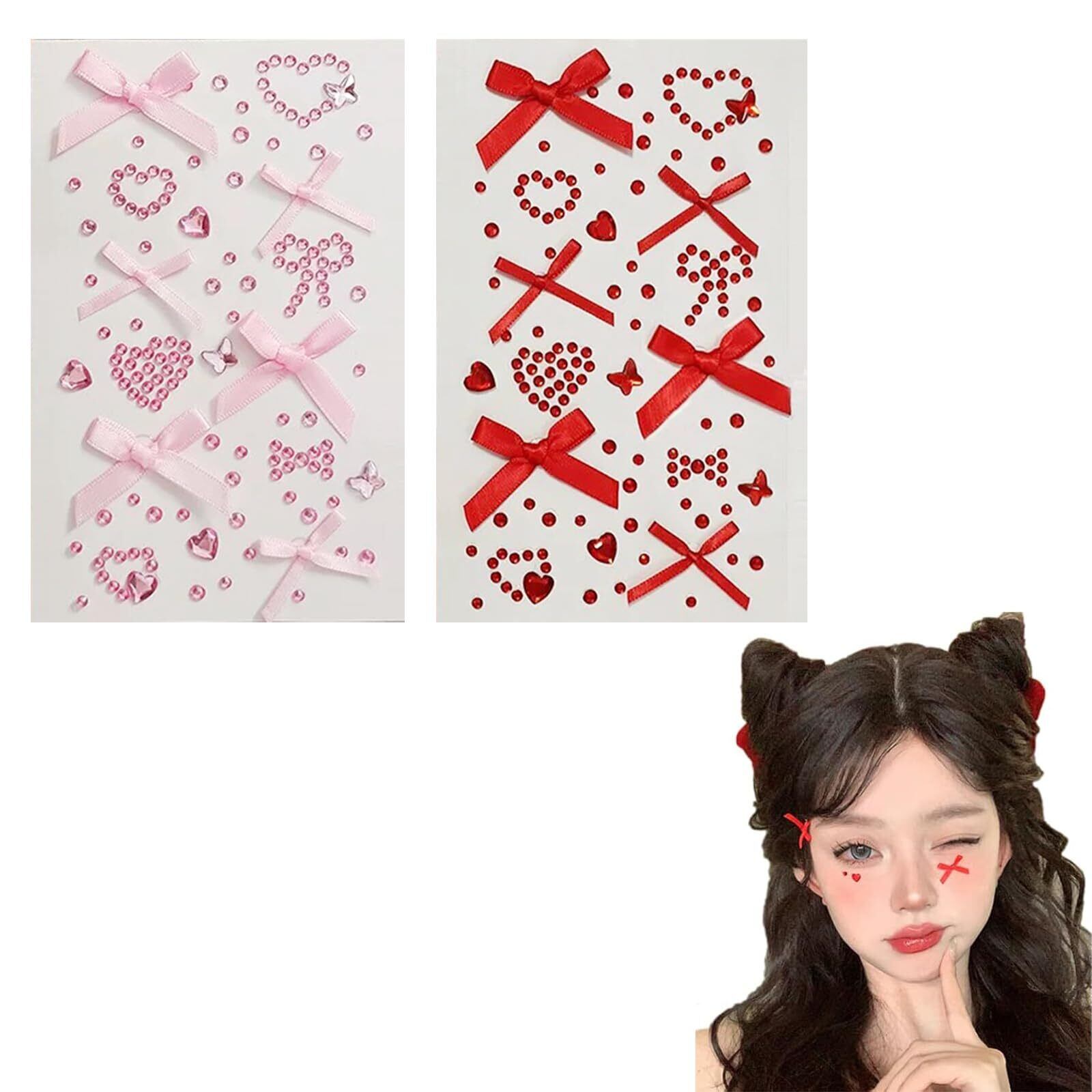 YANHUILAY 顔 シール【2枚セット】ラインストーン フェースステッカー ハート リボン かわいい 自己粘着性3D 光る キラキラ シール 貼り付け簡単 DIY ネイルデコパーツ 顔面デコ 携帯電話装飾用 DIY用品