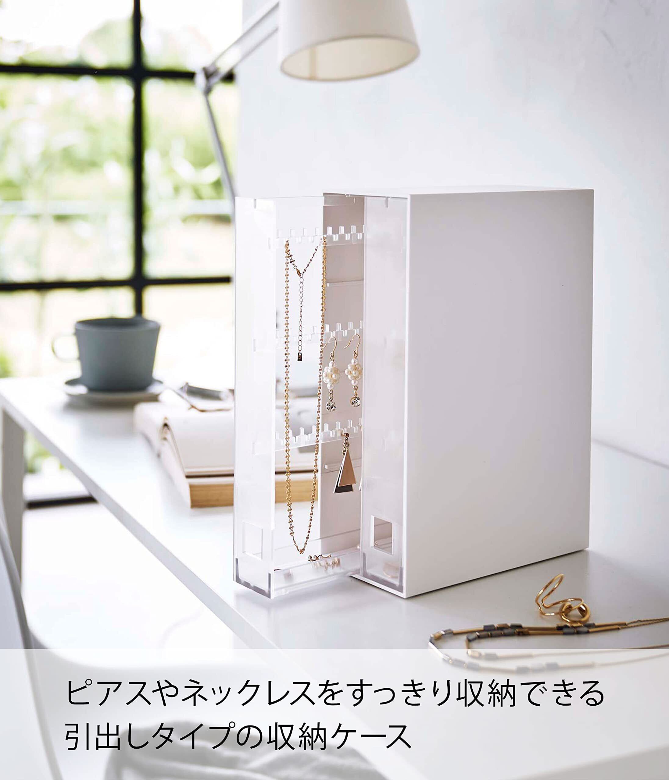 山崎実業(Yamazaki) ネックレス & ピアス 収納ケース ホワイト 約W8.8×D17.5×H25.3cm タワー tower 大容量 アクセサリー収納 引き出し 6131 | geisha Cat*
