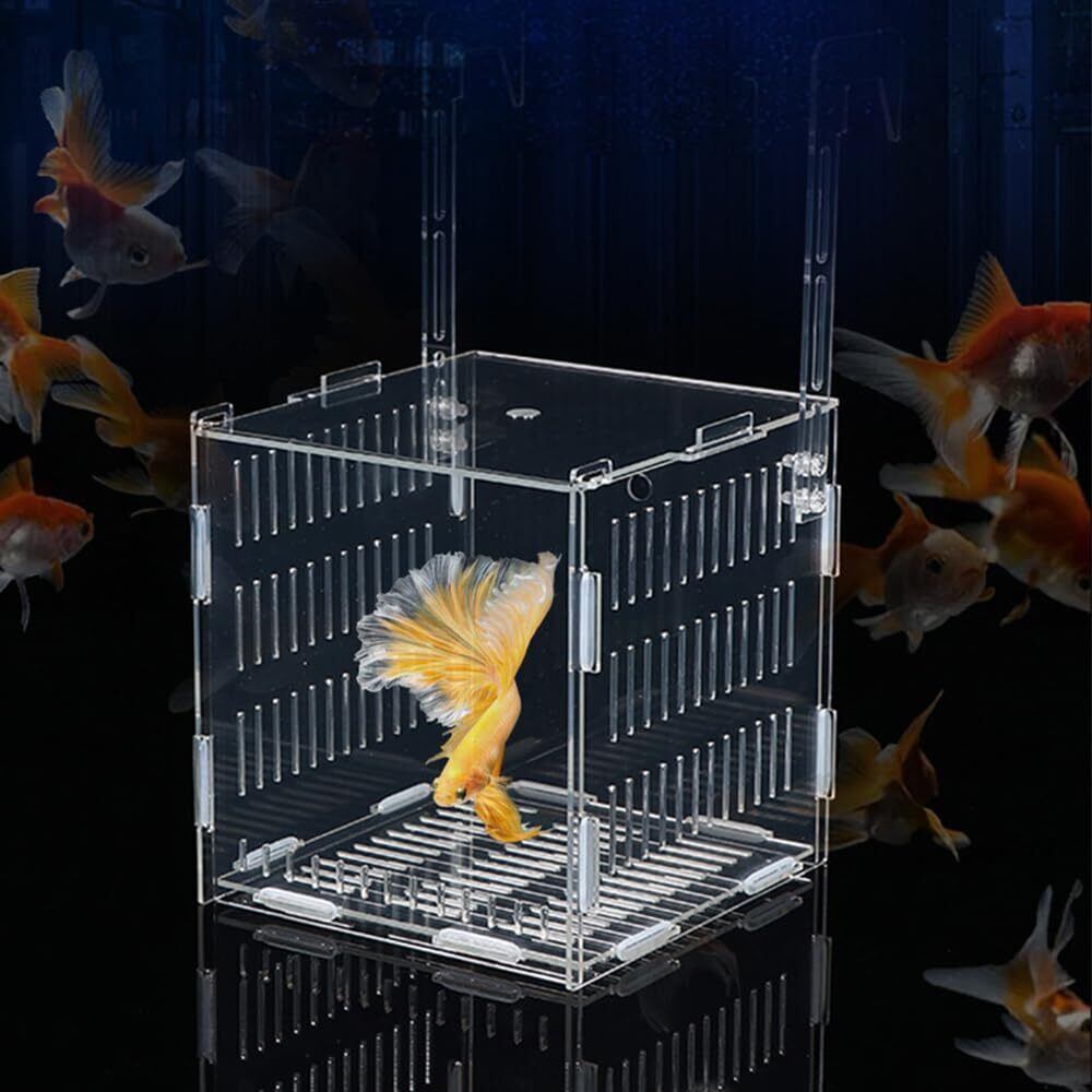 Vitalux 魚 繁殖隔離ボックス 10*10*10 多機能 水槽 隔離ケース 稚魚 繁殖隔離ボックス 孵化 産卵箱 魚の隔離 取り付け簡単 水族館アクセサリー 透明 アクリル | geisha Cat*