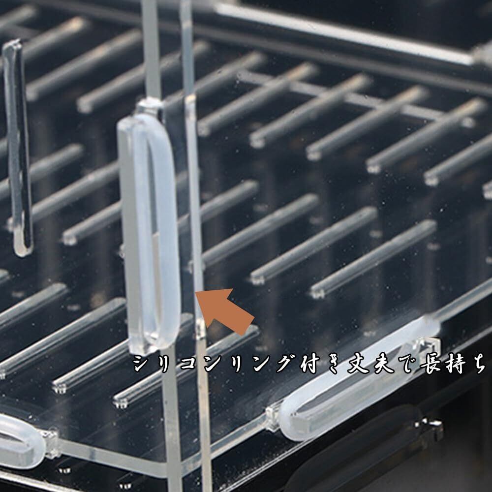 頑丈で長持ち:厚みのあるアクリル素材を採用し、耐久性が高く、変形しにくい設計になっています。長期間使用しても水質に影響を与えません。家庭用の小型水槽から、大型観賞魚用の水槽まで幅広く対応し、安定した隔離スペースを提供します。