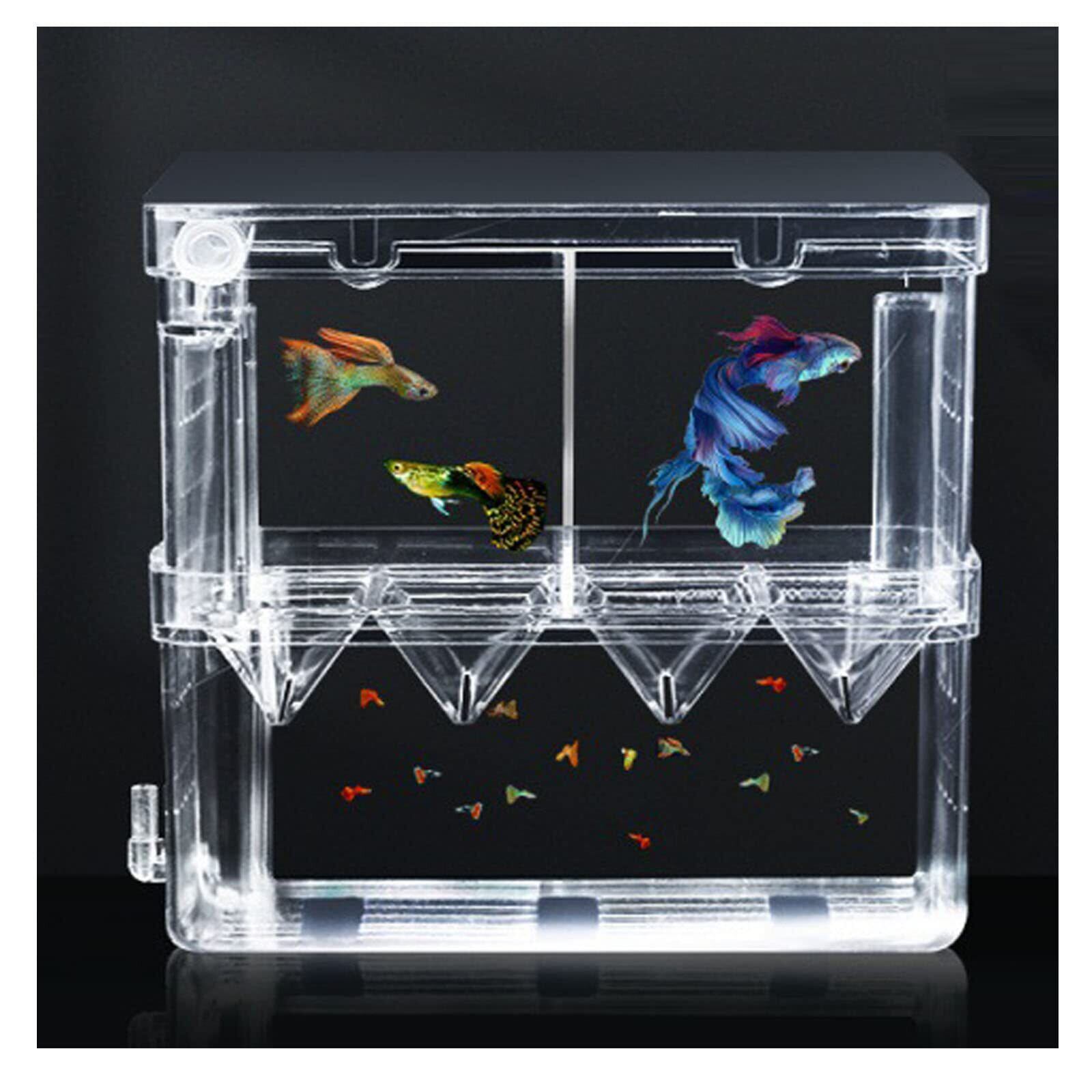 Yurika 魚 繁殖隔離ボックス 2段式2箇所 産卵ケース 透明 エビメダカ孵化産卵箱 多機能 グッピー 稚魚 隔離 飼育保護 水族館アクセサリー 取り付け簡単 酸素接続口付き L | geisha Cat*