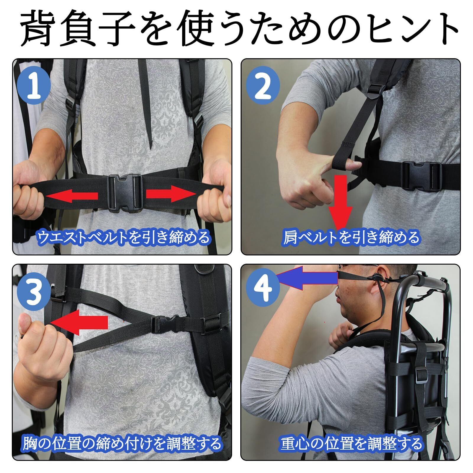【安心のサポート】耐荷重60kgのキャリーは頑丈な設計と耐久性のあるアルミ合金素材で作られており、最大60kgの重さにも耐えることができます。重い荷物を背負っても安定感があり、アウトドア体験をより楽しむことができます。