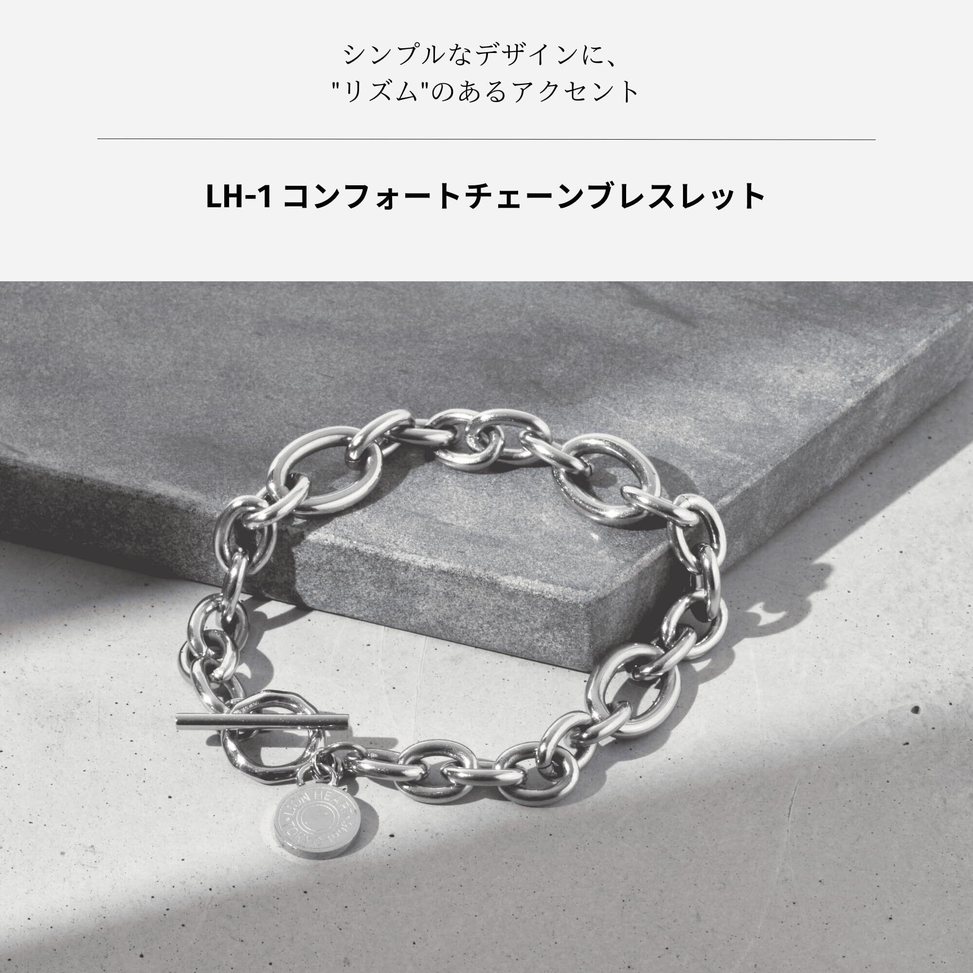 LION HEART ブレスレット LH-1 コンフォートチェーンブレスレット サージカルステンレス (金属アレルギー対応) メンズ つけっぱなし 直営 アズキ (ポーチ付き) 直営 シルバー Lサイズ 22cm