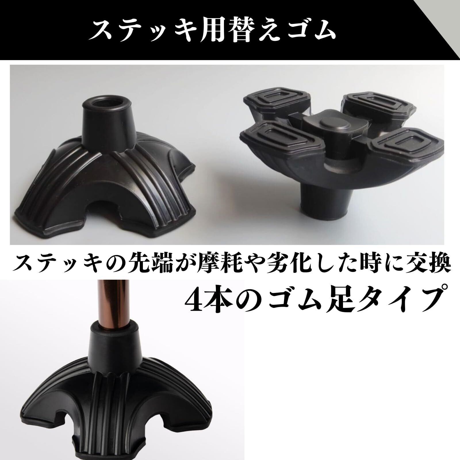 【高品質素材・自立デザイン】耐久性のあるゴム素材を使用し、長期間ご利用いただけます。地面との4つの接触点により、自立するように設計されており、置き場所や杖の収納にも便利です。