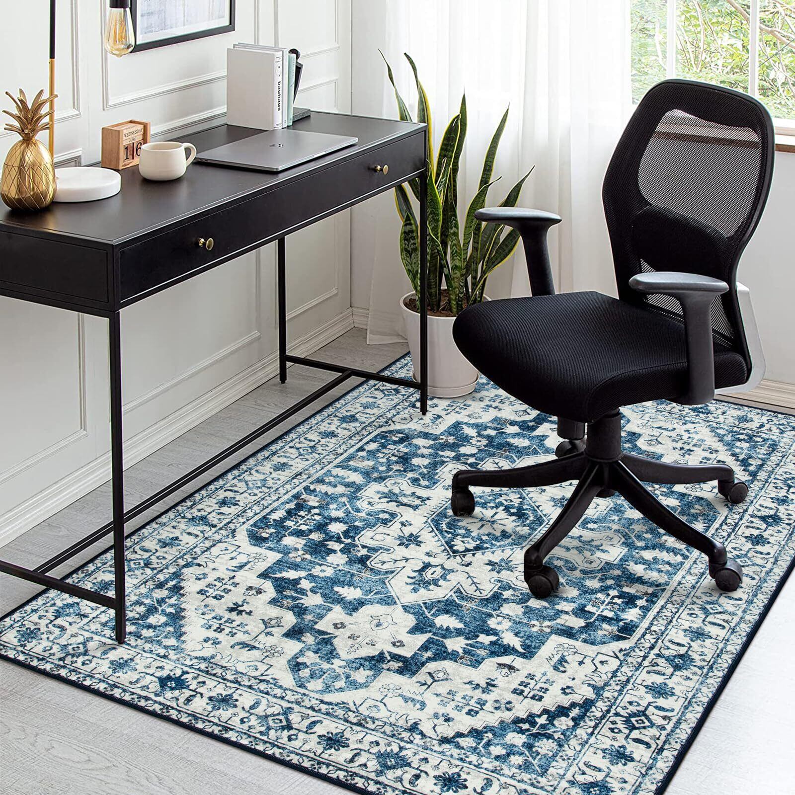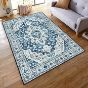 HAOCOO カーペット 1畳 ラグマット 洗える 120х160cm オールシーズン適用 ペルシャ風 じゅうたん 滑り止め 防音 寝室 ラグ リビング用 寝室 耐磨耗性 薄手 ホットカーペット対応 メダリオン柄 ブルー