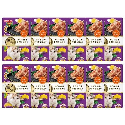 ペットライン キャットフード 懐石レトルト まぐろ白身 牛肉を添えて 魚介だしゼリー ウェット パウチ 40g×12個 (まとめ買い)
