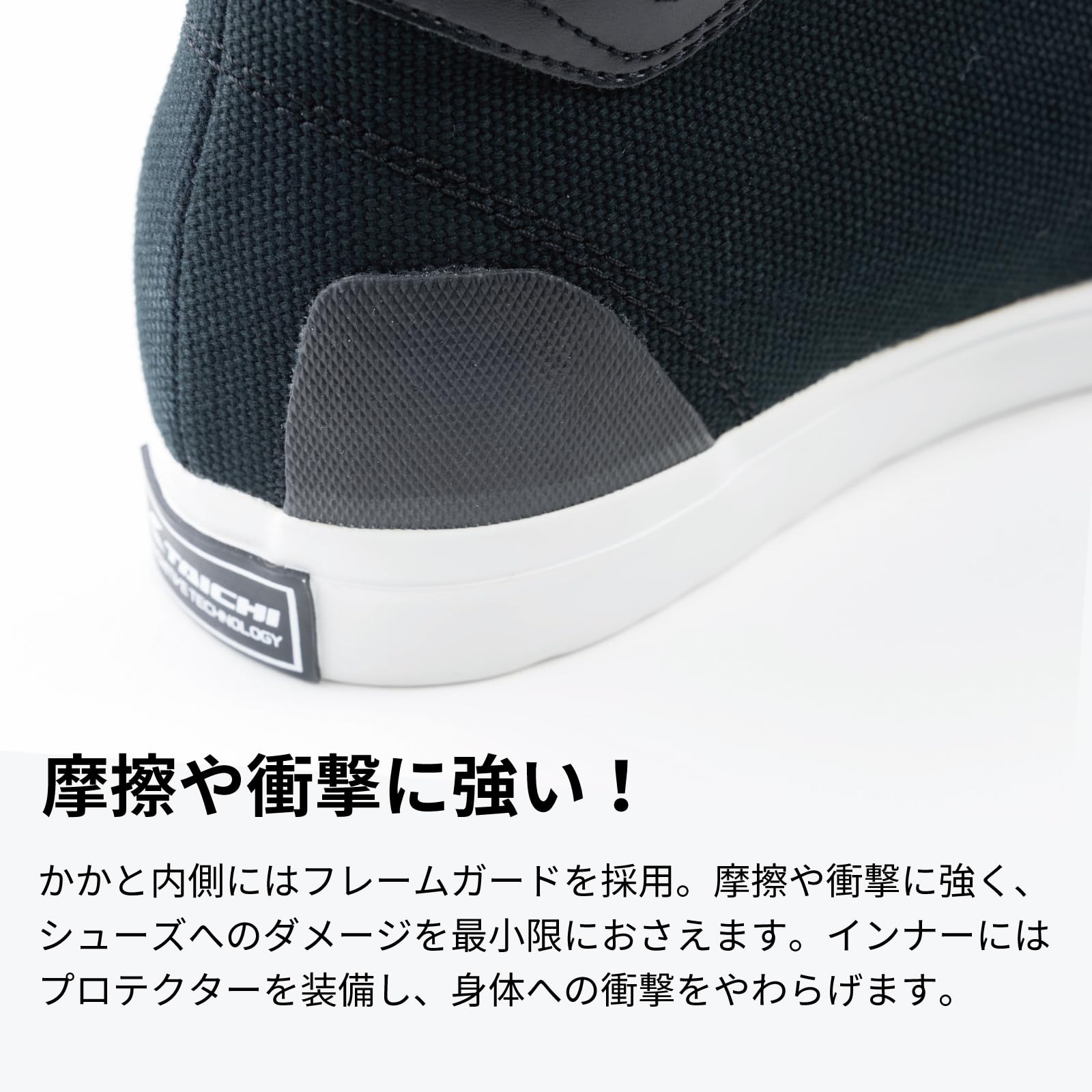 アッパー内部にはTAICHIオリジナルの防水・透湿素材"ドライマスター"を採用し、全天候での使用に対応。表地にはカジュアルなキャンバス地のほか、TECH WHITE・GRAY/BLACK・ALL BLACKには耐久性に優れ、メンテナンスも容易な合成皮革“Clarino"を、CORDURA BLACKにはナイロンの7倍もの強度をもつ耐久性に優れた繊維“CORDURA"を使用し、コーディネートの幅を広げました。ソールにはvibram社との共同開発により、ライディングに必要と考えられるグリップや排水性を考慮したハイグリップソールを採用。 また、かかと内側にはヒールガードを採用し、シューズ本体へのダメージを軽減。 タウンシューズの様なデザインながらもライディングに必要な機能を盛り込みました。