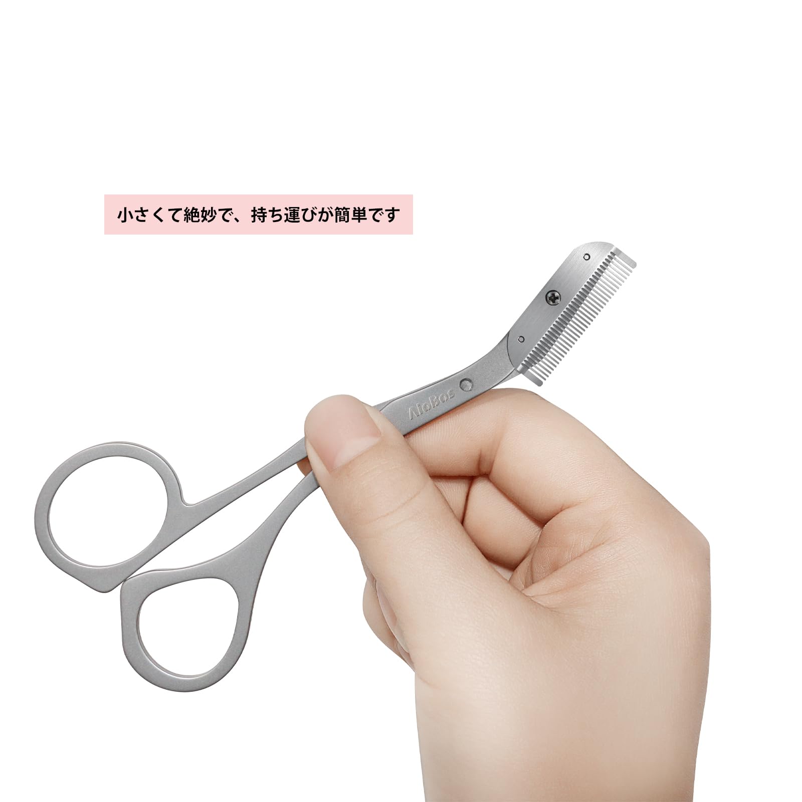 クシ付きマユハサミ 眉毛 ハサミ 高級ステンレス製 サンドブラスト 眉用はさみ 眉毛トリミング 眉のお手入れに 男女兼用 ブラシ付き 取扱説明書付き
