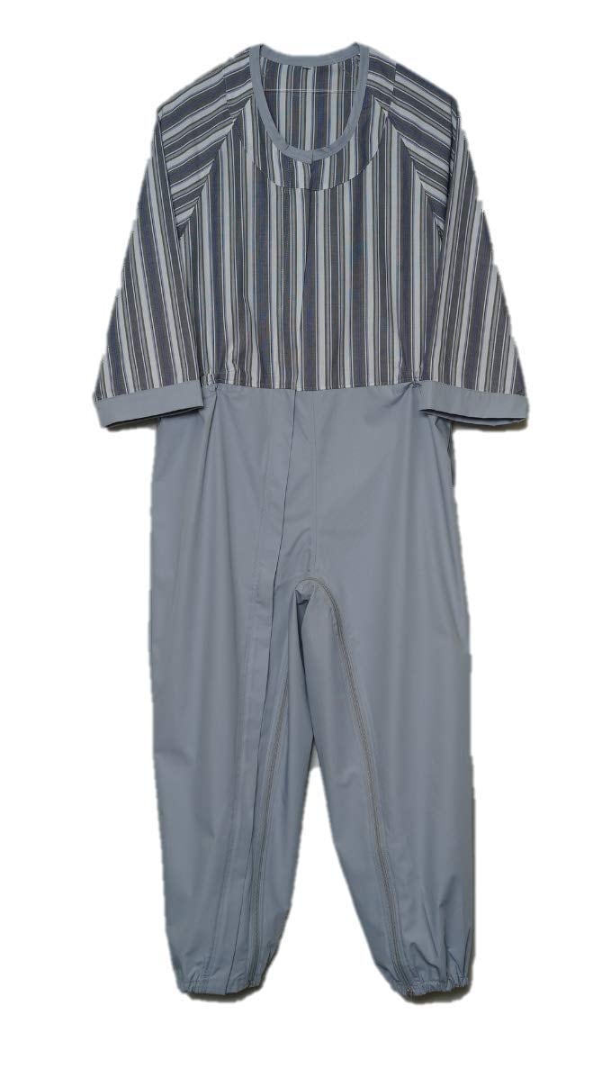 ろうべん対策 分離されたファスナー引き手をファスナーのスライダーに差し込まないと、ファスナーの開閉ができない仕様です。 胸元から足首まで1本のファスナーで開閉でき、着替えが簡単にできます。 寝たきりの方のオムツ交換も無理なくできる”オムツ交換用ファスナー”の仕様です。 くつろいだ雰囲気のサイズ感、ゆったりシルエットです。 ウエスト両サイドとズボンすそはフィットゴム仕様で着くずれを防止します。 素材はドライタッチの綿と対洗濯強度を高めたポリエステルとの混紡布を使用しました。 丈夫な素材ですので何度も繰り返しお洗濯していただけます。 介護する人、される人、双方の負担軽減にお役立てください。