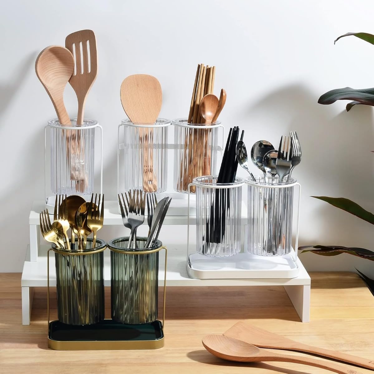 【大容量】大容量の収納が可能な容器で、お箸だけでなくスプーンやフォーク、おたまやしゃもじなどのキッチン道具も収納可能です。また、プラスチックPET製の箸置きは軽くなり、お手入れも楽になりました。