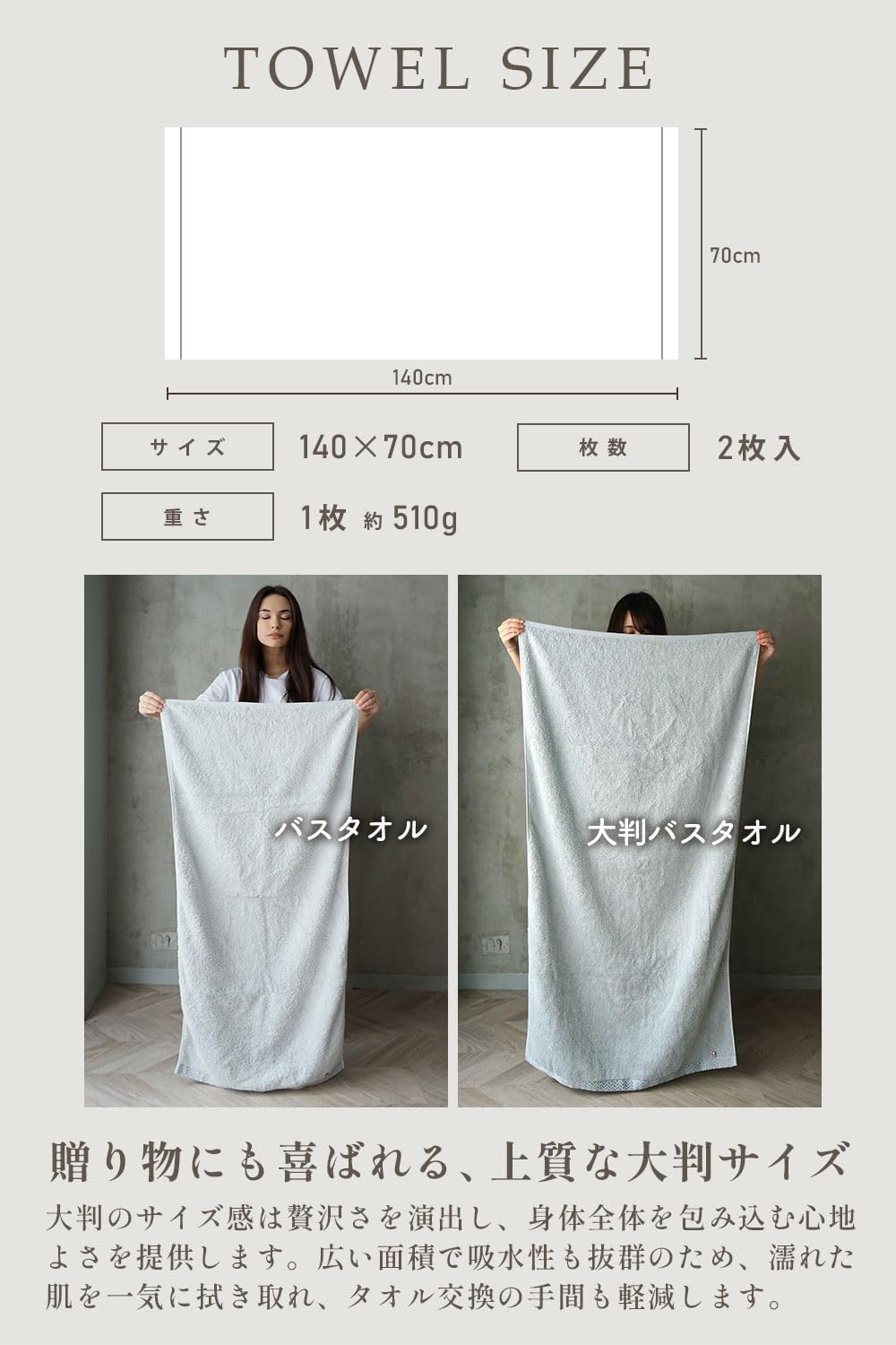 【 商品仕様 】■ 大判 今治 バスタオル 2枚セット プレミアム 高級 ロングパイル 甘撚り 撚糸 ダークグレー ( チャコールグレー ) ■ サイズ: 約70x140cm (1枚当たり) 約510g ■ 素材: 綿 ( コットン ) 100%