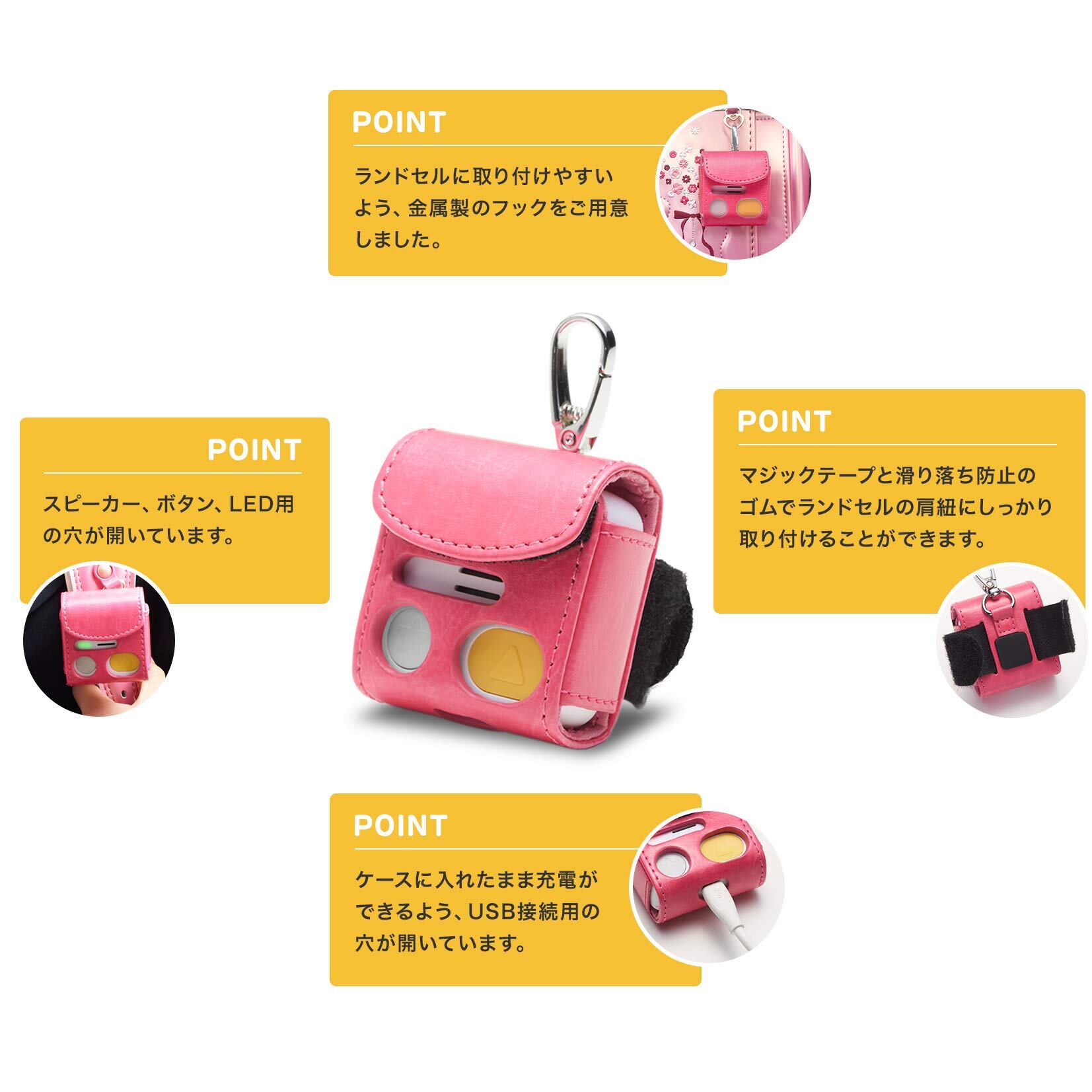 マチコミ みもりGPS (第2世代モデル) 専用ケース 便利なフックとベルト付き ケースに入れたまま充電可能 PUレザー素材 汚れ・傷防止 軽量 ローズピンク MRC-02P