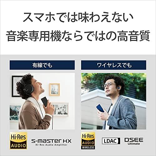 あらゆる音源を有線でも、ワイヤレスでも、高音質で楽しめる CD音源やダウンロード購入した楽曲、ストリーミングサービスで配信されている楽曲などあらゆる音源を「音楽専用機」ならではの高音質で再生。ウォークマンが長年培ってきたフルデジタルアンプの技術を結集した「S-Master HX」やこだわりの厳選パーツなど、コンパクトサイズながらスマートフォンにはない高音質に特化した本体設計を追求。また、有線接続時/ワイヤレス接続時にかかわらずAIが楽曲のタイプを解析し自動的に最適なアップスケーリングをする「DSEE Ultimate」により、普段スマートフォンで聴いていた音楽もハイレゾ級高音質で楽しむことができます。